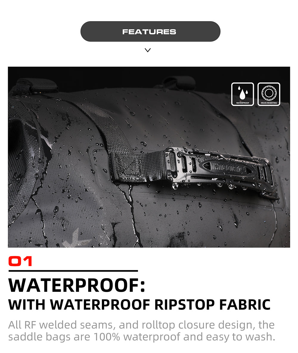 RhinoTrail XT – Dual Motorcycle Saddle Bags for Ultimate Touring - Black-18L(9L-2 BAGS)